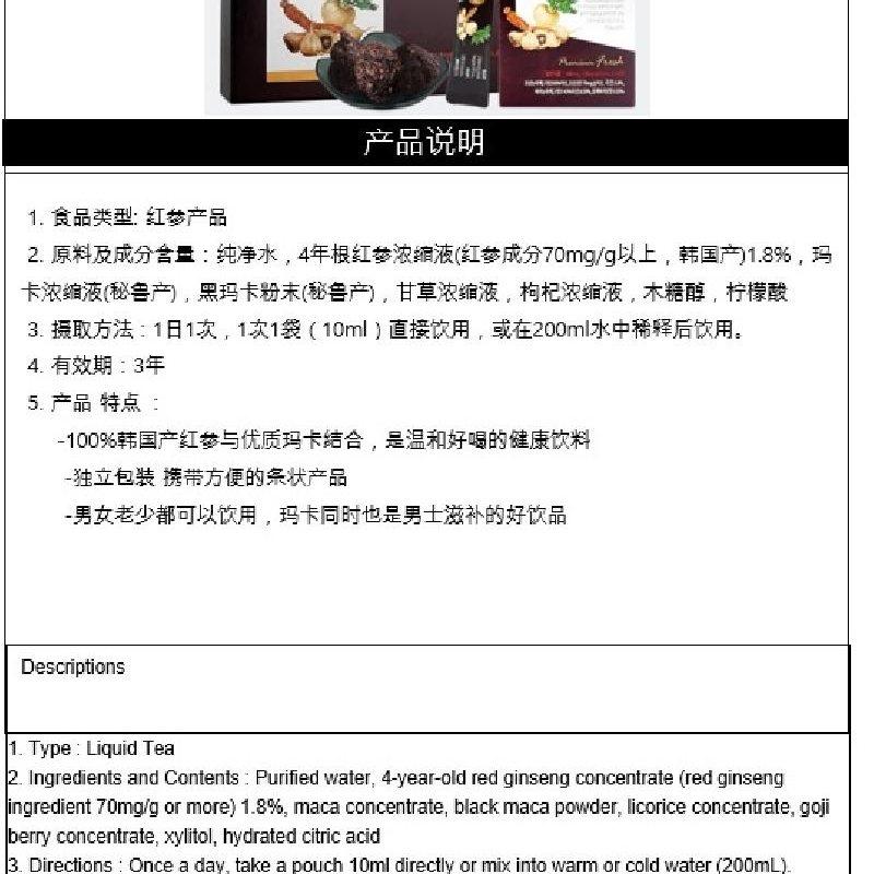 1日1次,1次1袋(10ml)直接飲用,或在200ml水中稀釋後飲用 請置於陰涼處保管,避免陽光直射。 室溫存放